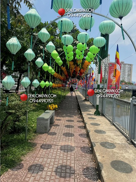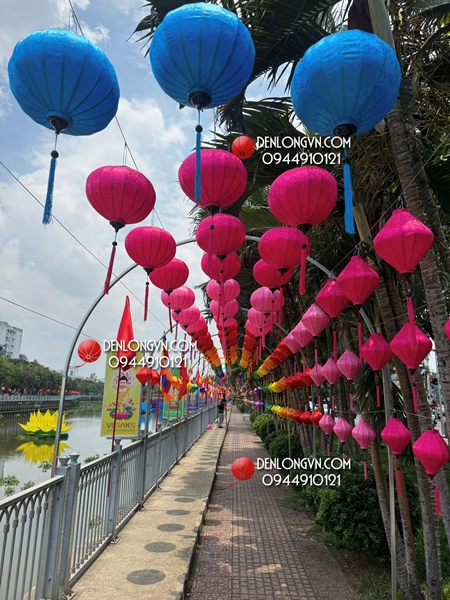 Đèn lồng Hội An giả gấm treo ngoài trời